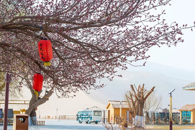 Visitors are increasingly drawn to Dunhuang during this period to witness the distinctive spectacle of apricot flowers blooming against the dramatic desert backdrop, experiencing the unique charm of the area in springtime.